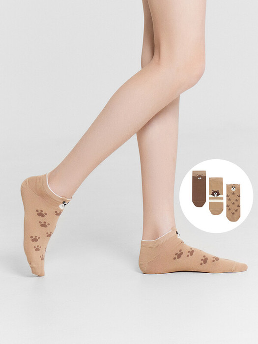 рис.3178 Мультипак из укороченных детских носков с рисунком в виде лапок, полосок и мишек с элементом пикота. Составляющие: 406A-3179, 406A-3180, 406A-3181