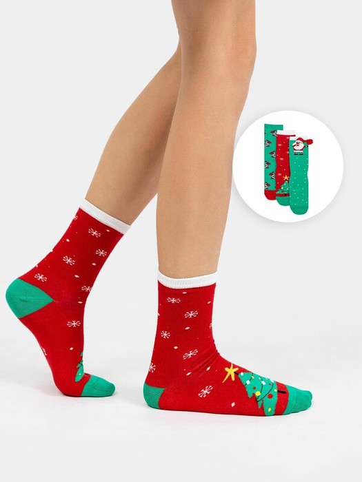рис.1820 Мультипак из трех пар детских гладких носков с рисунком в виде деда мороза.