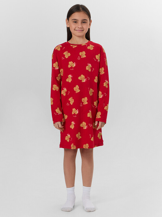Ночная сорочка для девочек с новогодним принтом — прекрасный выбор для создания праздничного настроения! Модель прямого свободного кроя из мягкого хлопка обеспечивает комфорт на протяжении всей ночи.