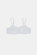 Верхний срез переда, проймы переходящий в бретель и верхний срез спинки обработанф эл. тесьмой 15мм (ловабль F1-15, артекс E2366). На бретелях пластиковые кольца-регуляторы 8 мм.