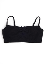Удобное и функциональное бюстье для девочек. Выполнено из хлопкового трикотажа с небольшим добавлением эластана. Чашки на подкладке, бретели регулируются по длине сзади. Миниатюрный бантик на ластовице делает бюстье максимально милым!