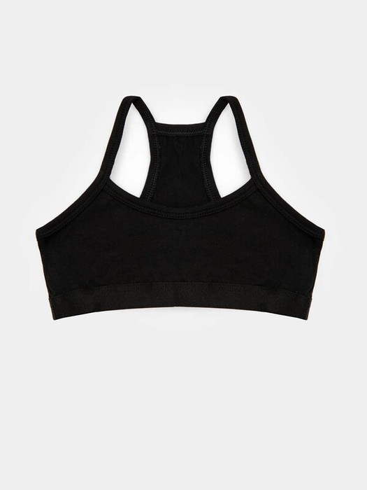 Бюстье из трикотажной кулирки. Горловина округлой формы. Спинка фигурная, как в спортивном топе. Все срезы окантованы бейкой из основного полотна. По нижнему срезу настрочена жаккардовая эластичная тесьма.