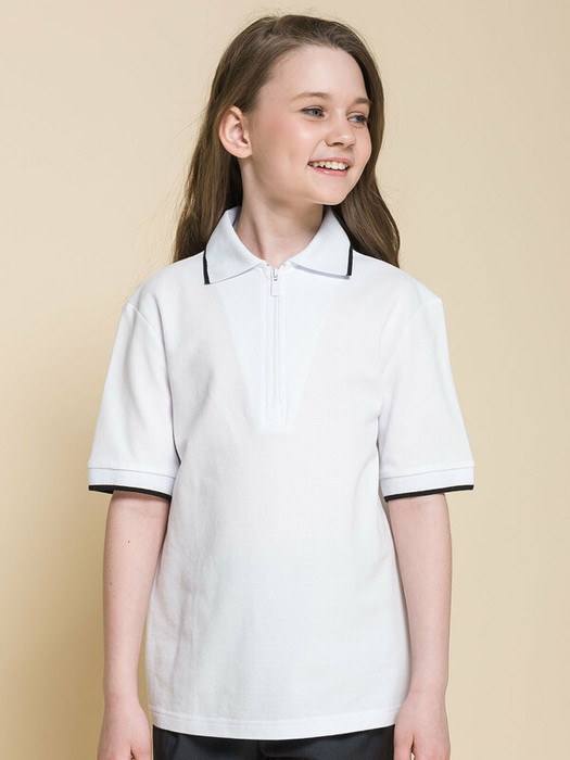 Футболка из трикотажа пике для девочки. Приятный, плотный, мягкий материал из 100% хлопка. Почти не мнется, гигроскопичен, с хорошей воздухопроницаемостью, не требует сложного ухода. Центральная застёжка на модную короткую молнию из пластика — любой ребёнок сможет быстро надеть и снять изделие. Лаконичный дизайн позволяет сочетать футболку с различными брюками и юбками. Модный и практичный вариант школьной одежды для девочек.