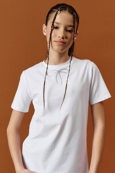 На передней части — нежная аппликация из сверкающих страз: ненавязчивый, но стильный акцент, который понравится любой девочке.
