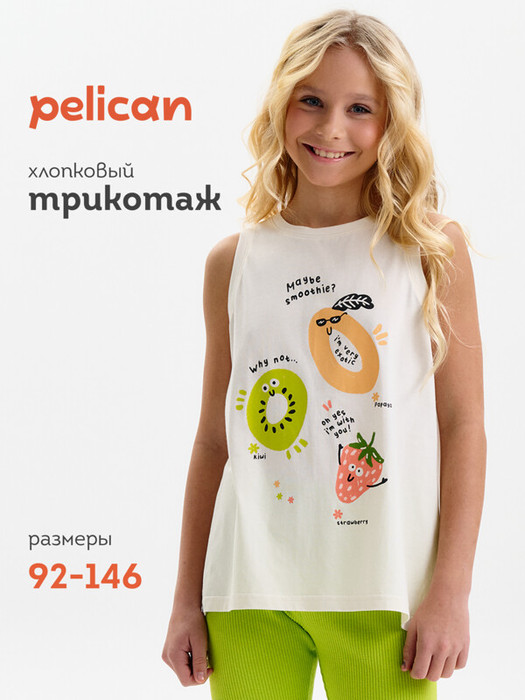 24.03 Pelican Майка для девочек GFVV3390/1 Молочный