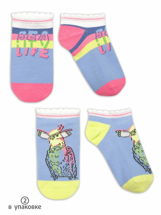 Детские короткие носки, набор из 2-х пар. Носки с высоким содержанием хлопка и добавлением эластана не садятся, не теряют форму. Не сползают с ног, с мягкой нетугой резинкой, которая не сдавливает ногу. Носочки подойдут к любой одежде для детей. Носки яркие, цветные, прикольные, идеально для подарка девочке.