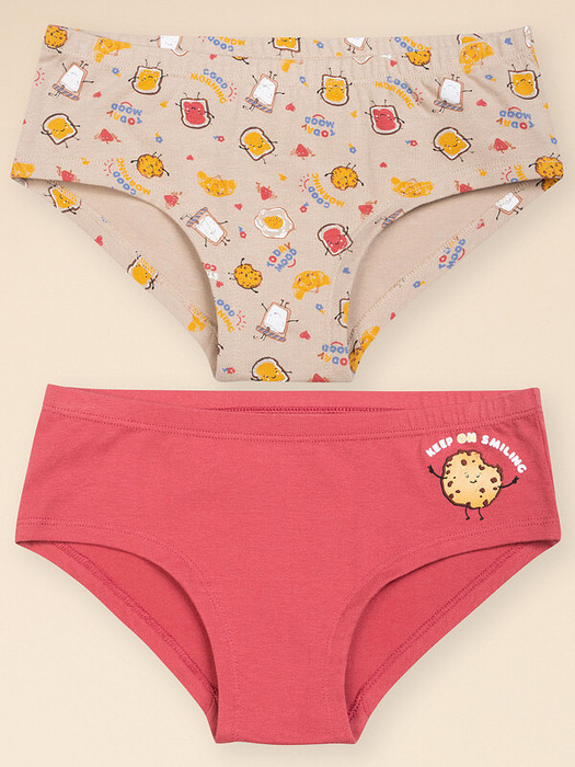 Выбирая бельё для своего ребёнка, любая мама заботится о его качестве и о том, чтобы ребёнку было удобно. Комплект (2 шт.) трусов для девочки полностью соответствует этим запросам. Шорты выполнены из ткани с высоким содержание хлопка, что обеспечивает им мягкость и безупречную воздухопроницаемость. Кожа ребёнка свободно дышит. Благодаря эластану в составе ткани изделие в течение длительного времени сохраняет первозданную форму. Качественный материал и грамотный крой обеспечивают идеальную посадку белья — ребёнку комфортно и днём, и ночью. Мягкая резинка исключает раздражение и трение. Шортики представлены в двух трендовых оттенках: карминный розовый и "овсяное молоко". Терракотовый и бежевый -  очень уютные и по-настоящему красивые цвета — понравятся любой девочке. Трусы украшены милыми принтами в стиле "хюгге" с позитивным настроением. Перевод: "Продолжай улыбаться". Принты мягкие и долговечные, прекрасно переносят частые стирки. Модель идеальна для повседневной носки, отдыха, спорта. То, что нужно для вашег