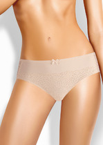 Бикини на хлопке. Модель имеет симметричные кружевные вставки и бант на детали переда и кружевную спинку с треугольной вставкой из (г). По ножке и поясу выполнена обработка резинкой с фестоном.