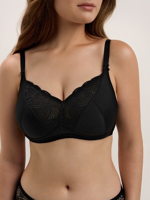 Классическая серия белья Aura создана из неэластичного функционального трикотажа и кружева с растительным рисунком. Белье эффектно подчеркивает женственные линии и гарантирует безупречную поддержку, необходимую для обладательниц пышных форм.