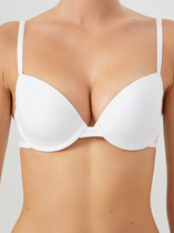 Бюстье женское с чашками-вкладышами (FN-75), выполнено из кулирного полотна на подкладке из основного полотна. Чашки треугольные, обтачные по срезам с эл тесьмой 6 мм (жилка Wt4-6, девсел 13460W) внутри. Цельнокроенный широкий стан, с пластинами. По шву притачивания чашек к стану внутри стоит эл тесьма 10 мм (жесткая без зуба WTWE-10, девсел 487W).