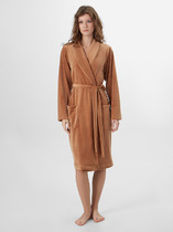 Женский халат прямого силуэта — это элегантная и удобная модель, созданная для домашнего уюта и расслабленного отдыха. Длина до колен делает его практичным и универсальным, подходящим как для утренних ритуалов, так и для вечернего расслабления. Халат выполнен с запахом, что позволяет регулировать посадку по фигуре, а съёмный пояс, продетый в шлевки по бокам, обеспечивает надежную фиксацию и подчеркивает талию. Дополнительные завязки на уровне талии помогают зафиксировать халат изнутри, делая посадку более стабильной и комфортной. Концы пояса свободно завязываются, позволяя регулировать степень прилегания. Длинные рукава создают ощущение уюта и тепла, особенно в прохладное время. Изделие выполнено из мягкого, приятного к телу материала — смеси модала и хлопка, которая отличается высокой воздухопроницаемостью, нежностью и устойчивостью к износу. Такой халат станет любимым элементом домашнего гардероба, сочетая в себе комфорт, функциональность и женственность.
