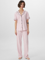 Горловина круглой формы с притачной обтачкой из основного полотна. Рукава длинные втачные. Перед и спинка цельнокроеные. Низ джемпера и рукавов обработан швом в подгибку. Брюки длинные, немного заужены к низу. Пояс цельнокроенный с эластичной тесьмой внутри. Низ брюк застрочен с эластичной тесьмой внутри.