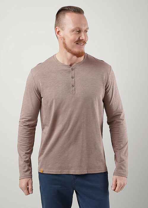 Лонгслив мужской с длинным рукавом, округлой горловиной на планке из фактурного полотна ""флам"". Изделие дополнено имиджевой фурнитурой. Данная модель прекрасно комбинируется с джинсами или шортами благодаря своей универсальности.