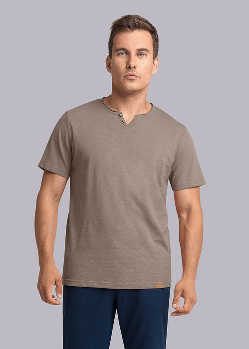 Футболка мужская с округлой горловиной и планкой, коротким втачным рукавом. Данная модель прекрасно комбинируется с джинсами или шортами. Отличное решение на лето, для прогулок с друзьями или поездки на отдых.