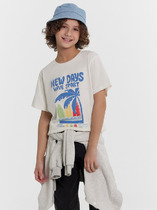 Футболка верхняя прямого силуэта. Перед и спинка цельнокроенные. Рукава втачные короткие. Линия плеча спущена. Горловина круглой формы, обтачка из трикотажного полотна рибаны 1*1. Шов втачивания рибаны по спинке закрыт бейкой из основного полотна. Низ футболки и рукавов обработан на 2-х игольной плоскошовной машине швом в подгибку.