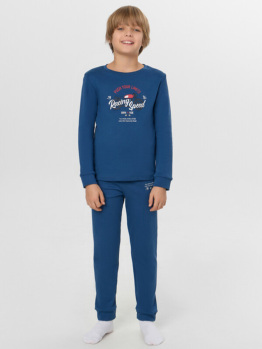 Пижама для мальчиков с надписью "Be wild. Be free" ("Будь диким. Будь свободным") — это комплект для смелых и активных ребят. В набор входит свободный джемпер и прямые брюки, сшитые из мягкой дышащей ткани, которая не раздражает кожу даже во время сна.