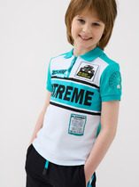 Поло свободного силуэта, перед и спинка цельнокроеные. По переду обработана застежка «поло» на 3 петли и пуговицы (d=10мм). Горловина с воротником стойкой из довяза DVС-100/001-0/5. Рукав втачной, одношовный, плечо спущено. Низу рукава - довяз DM2С-35/001-0/5. Низ изделия обработан швом в подгибку.