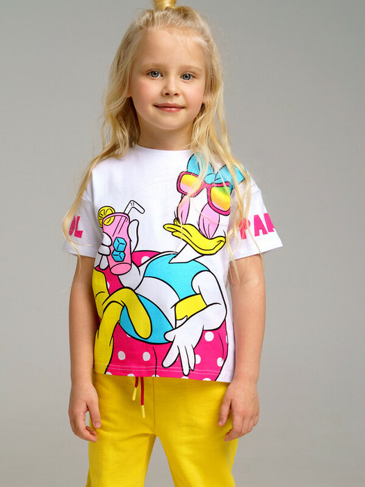Футболка с персонажем Disney из качественного и приятного на ощупь трикотажа джерси. Силуэт oversize. Высокое содержание хлопка 95%. Благодаря наличию эластана в составе ткани изделие проще в уходе и держит форму. Принт сохраняет первоначальный вид даже после многочисленных стирок.
