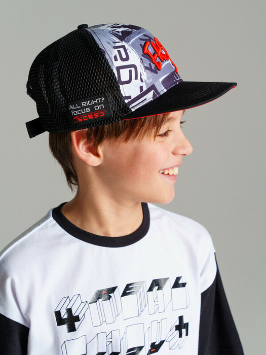 Кепка из 100% хлопка. Прямой козырек защищает глаза от солнца и сохраняет лицо в тени. Регулировка ширины липучкой.