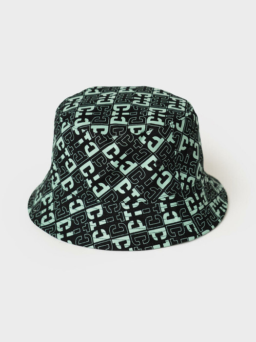 Cтильная двухсторонняя детская панама для мальчика. Одна сторона выполнена в однотонном мятном цвете с контрастным логотипом, другая — с ярким чёрно-мятным принтом.