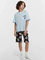Пижама: футболка, брюки из качественного и приятного на ощупь трикотажа джерси. 100% хлопок. Футболка oversize. Брюки comfort fit с эластичным поясом со шнурком. Карманы в боковых швах.