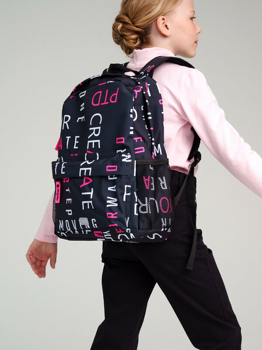 Школьный рюкзак для девочки подростка. Широкие регулируемые лямки с мягкими вкладками и сетчатым покрытием. Основной отдел на молнии, карман на молнии, 2 боковых сетчатых кармана. Внутри рюкзака: отдел для папок, карман на молнии, 2 кармана без замка, карабин для крепления пенала/ключей. Усиленная спинка и дно. Светоотражающие элементы на переднем кармане и плечевых ремнях.