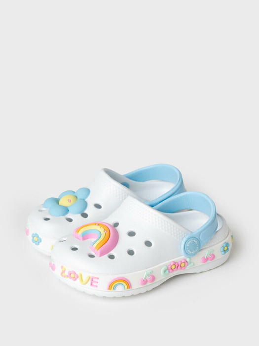 Оригинальные детские сабо для девочки с объемными патчами в цветочной теме. Сабо из облегченного и прочного ЭВА. Материал хорошо моется. Форма модели учитывает эргономику стопы. Модель имеет перекидной ремешок для лучшей фиксации обуви на ноге. Благодаря вентиляционным отверстиям сабо проветриваются, ноги ребенка дышат и не потеют.