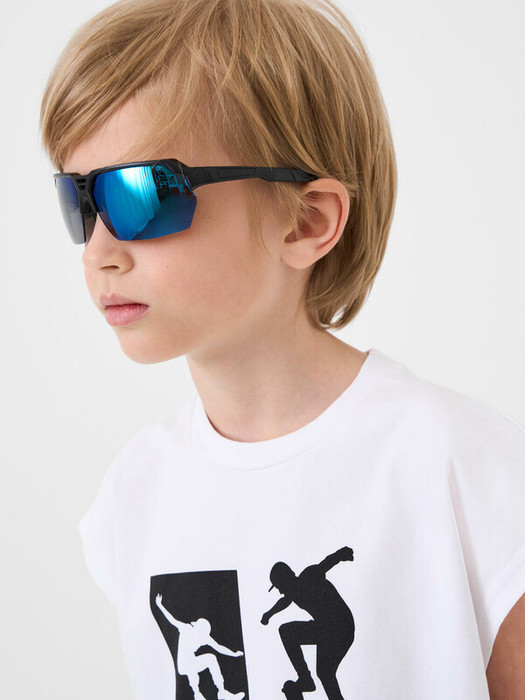 Солнцезащитные очки футуристической формы в стиле Y3K для мальчика подростка. Гибкая пластиковая конструкция мягко облегает лицо, не сдавливая его, а регулируемые подушечки для носа и кончики виска обеспечивают плотную посадку даже во время самых активных занятий ребенка. Солнцезащитные очки с фильтром Cat3.  Зеркальные линзы хамелеон имеют защиту UV400, которая отражает 100% ультрафиолетовых лучей с длиной волны менее 400 нанометров, эффективно блокируя все ультрафиолетовые лучи при солнечном свете. Небьющиеся акриловые линзы на 100% блокируют вредные UVA/UVB лучи. Ширина оправы - 137 мм, длина дужки - 120 мм. Обхват головы 50-52 см. Такие очки эффективны для защиты глаз в тропиках, у моря и в горах. Очки транспортируются в картонной коробке. В комплект входит фирменный текстильный чехол из микрофибры, с помощью которого легко ухаживать за изделием. Очки транспортируются в картонной коробке.
