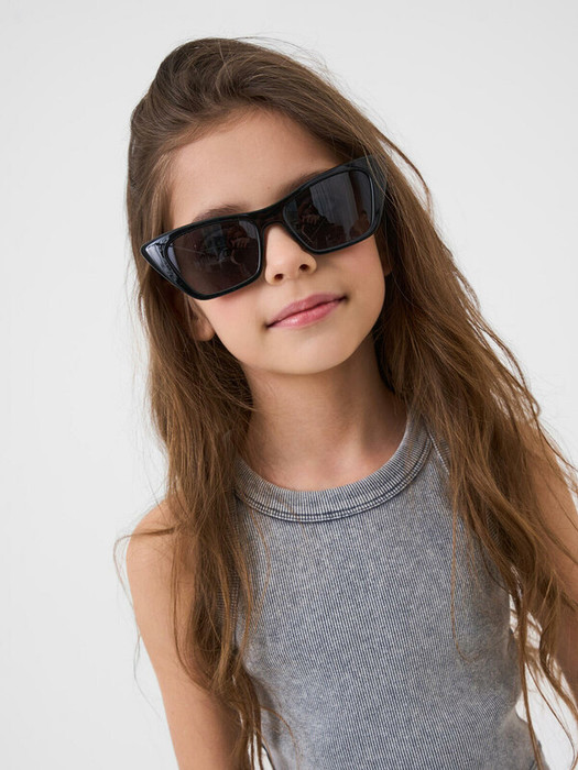Солнцезащитные очки формы"кошачий глаз" для девочки-подростка. Солнцезащитные очки с фильтром Cat3 и поляризацией. Тёмные линзы имеют защиту UV400, которая отражает 100% ультрафиолетовых лучей с длиной волны менее 400 нанометров, эффективно блокируя все ультрафиолетовые лучи при солнечном свете. Ширина оправы - 145 мм, длина дужек - 146 мм. Обхват головы 54-56 см. Поляризационные фильтры на очках поглощают блики, отражаемые от горизонтальных поверхностей, что помогает повысить четкость зрения и избежать напряжения глаз ребенка. Только при просмотре в линзах с поляризацией видны воздушные шарики в виде сердечек на тест-картинке, вложенной в чехол. Небьющиеся линзы из триацетата целлюлозы устойчивы к царапинам. Такие очки эффективны для защиты глаз в тропиках, у моря и в горах. В комплекте: текстильный чехол, тест-картинка со слониками. Текстильный чехол выполнен из микрофибры и им можно протирать очки. Очки транспортируются в картонной коробке.