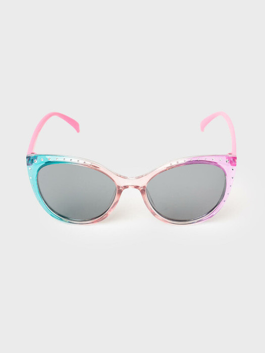 Солнцезащитные очки для девочки. Градиентная прозрачная оправа по верхнему краю декорирована стразами. Солнцезащитные очки с фильтром Cat3 и поляризацией. Тёмные линзы имеют защиту UV400, которая отражает 100% ультрафиолетовых лучей с длиной волны менее 400 нанометров, эффективно блокируя все ультрафиолетовые лучи при солнечном свете. Ширина оправы - 126 мм, длина дужек - 125 мм. Обхват головы 48-50 см. Небьющиеся линзы из триацетата целлюлозы устойчивы к царапинам. Поляризационные фильтры на очках поглощают блики, отражаемые от горизонтальных поверхностей, что помогает повысить четкость зрения и избежать напряжения глаз ребенка. Только при просмотре в линзах с поляризацией видны воздушные шарики в виде сердечек на тест-картинке, вложенной в чехол. Небьющиеся линзы из триацетата целлюлозы устойчивы к царапинам. Такие очки эффективны для защиты глаз в тропиках, у моря и в горах. В комплекте: текстильный чехол, тест-картинка со слониками. Текстильный чехол выполнен из микрофибры и им можно легко ухаживать за изделием. . Очки транспортируются в картонной коробке.