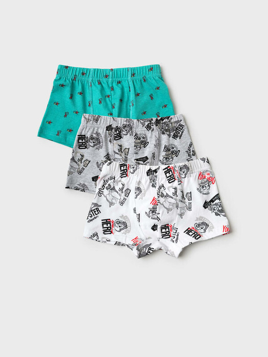 Набор из трех детских трусов-боксеров для мальчика. Изделие плотно прилегает к телу, не имеет боковых швов, что делает его особенно комфортным. Эластичный пояс с логотипом бренда обеспечивает надёжную посадку. Принт с любимыми мультяшными героями - Чип и Дейл. Материал — мягкий хлопковый трикотаж, приятный к телу.