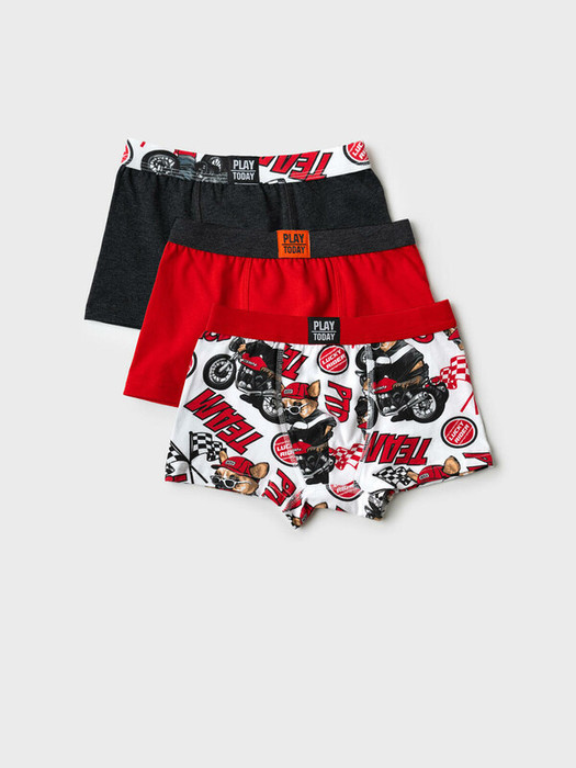 Набор из трех детских трусов-боксеров для мальчика. Изделие плотно прилегает к телу, не имеет боковых швов, что делает его особенно комфортным. Эластичный пояс с логотипом бренда обеспечивает надёжную посадку. Материал — мягкий хлопковый трикотаж, приятный к телу.