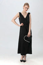 Платье свободного силуэта из эластичного полотна с жаккардовым узором. V-образный вырез горловины обработан притачной планкой. Втачной длинный рукав в спущенную пройму с манжетой. Манжет рукава и планка выполнены из ткани-компаньона.