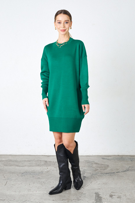Платье свободного силуэта. Рукав втачной в спущенную пройму. Вырез горловины оформлен резинкой. Низ изделия и низ рукава оформлены высокой резинкой. Изделие выполнено из меланжевой структурированной пряжи.