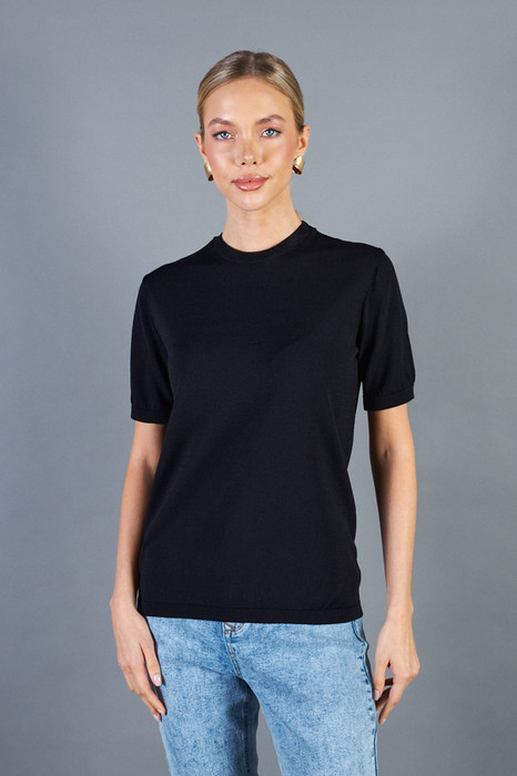 Джемпер прямого силуэта. Короткий втачной рукав. Круглый вырез горловины, низ изделия и низ рукава оформлены резинкой. Изделие выполнено из мягкой вискозной пряжи.