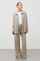 Блуза свободного силуэта из блузочной ткани. Низ изделия асимметричной длины (спинка удлинена относительно переда) с разрезами в боковых швах. Втачной рукав в спущенную пройму. Круглый вырез горловины оформлен косой бейкой из основной ткани.