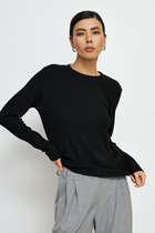 Джемпер прилегающего силуэта из меланжевого эластичного полотна. Втачной короткий рукав. Круглый вырез горловины оформлен бейкой. Джемпер – это хорошая базовая вещь, подходящая для любого гардероба.