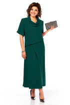 Эффектное платье прямого силуэта, чуть расширенное книзу из вискозной ткани с крэш-эффектом. Рукав оригинального кроя, низ рукава присборен на резинку. По переду и спинке изделия выполнена V-образная кокетка со сборкой в области плеча. Круглый вырез горловины, по среднему шву спинки застёжка на петлю-пуговицу. В комплекте пояс из основной ткани.