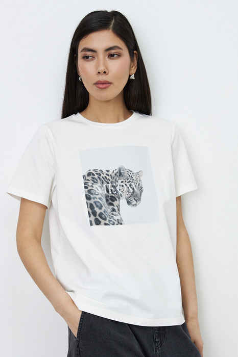 Джемпер свободного силуэта из хлопкового эластичного полотна. Втачной короткий рукав. Круглый вырез горловины оформлен бейкой.