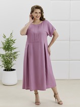 Платье из плательной ткани. Свободный силуэт, слегка прилегающий в области бедра. По спинке изделия выполнена застёжка на декоративные пуговицы, снизу-разрез. Цельнокроеный рукав 3/4. Круглый вырез горловины. В комплекте пояс, позволяющий создавать приталенный силуэт.