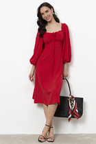 Рубашка свободного силуэта из вискозной ткани с застёжкой на пуговицы. Низ изделия асимметричной длины (спинка удлинена относительно переда) с закруглениями по бокам и разрезами. Рубашечный рукав на манжете с застёжкой на пуговицы. Вырез горловины обработан отложным воротником на стойке. На задней части изделия выполнена кокетка с небольшой складкой. Достоинство этой модели в способности скрыть некоторые недостатки фигуры. Её можно сочетать как с брюками, так и с джинсами.