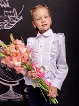 Школьная блузка для девочки. Актуального дизайна из качественного материала для девочки. Кокетка и рукава выполнены из мягкого гипюра.Прекрасный вариант для школьных будней, так и для торжественных случаев. Производство:Радуга-дети Материал: Вискозное полотно, гипюр. Состав: 93% вискоза,7% эластан., гипюр-100% п/э.