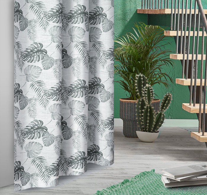 Совместные покупки Курган Товары для дома и дачи Шторы — 9914, ГАВАЙИ - серый, МЕТРАЖ портьерный, ширина 160 см, белый фон, серые листья,
