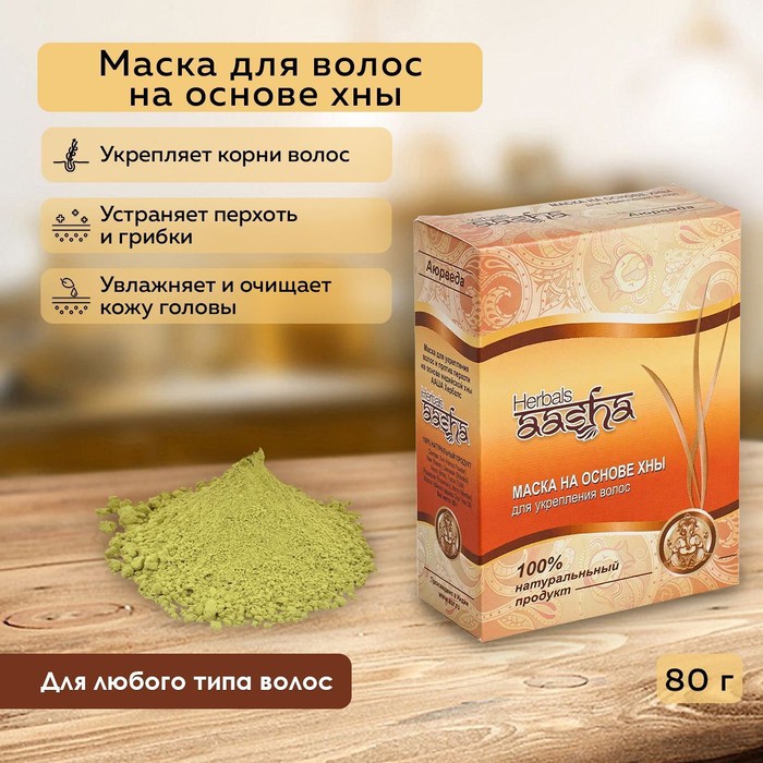 Маска для укрепления волос и против перхоти на основе индийской хны Ааша Хербалс — действенное средство на основе традиционных аюрведических трав для волос, с лечебным эффектом. Питательная маска для волос на основе хны Ааша Хербалс, произведенная в Индии по аюрведическим рецептам, является одной из лучших масок для роста и питания корней волос. Несмотря на то, что основу составляет натуральная индийская хна, маска для увлажнения волос Ааша Хербалс одновременно регулирует работу сальных желез, благодаря наличию в составе экстрактов розмарина и алое вреа.