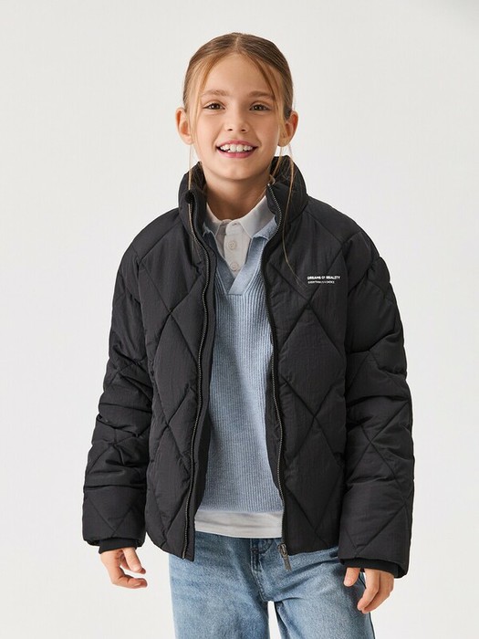 Детская утеплённая стеганая куртка для девочки - прекрасный вариант для прогулок на свежем воздухе в демисезон. Модель выполнена из ткани с жатым эффектом и водоотталкивающей пропиткой, что обеспечивает защиту от дождя и влаги. Подкладка изготовлена из стандартной подкладочной ткани. Вид утеплителя - синтепух, состав утеплителя 100% полиэстер (вес утеплителя 250г 140 размер +15г на каждый размер). Рекомендованный температурный режим от +10 до - 10 градусов. Застёжка на молнию с внутренней ветрозащитной планкой предотвращает проникновение холодного воздуха, а защита от защемления подбородка добавляет комфорта во время ношения. Воротник-стойка надежно закрывает горло, избавляя от необходимости носить шарф. Спереди куртка в черном цвете украшена принтом с надписью "DREAMS OF REALITY EVERYTHINGS A CHOICE" англ. - "Мечты о реальности выбор каждого", которая придает стильный вид. Боковые карманы идеально подойдут для того, чтобы согреть руки. Изнутри предусмотрена утяжка по низу изделия для регулировки посадки и предотвращения задувания холодного воздуха. Трикотажная манжета на рукавах обеспечивает дополнительную защиту от ветра. Рост модели на фото 144. Размер модели на фото 140.