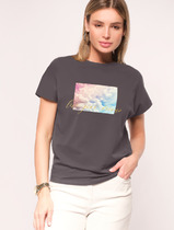 Vilatte Футболка из хлопкового облегченного полотна с принтом фольгой D49.020 се