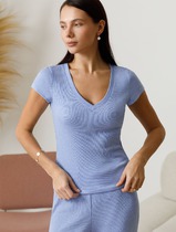 Футболка с V вырезом из эластичного трикотажа кашкорсе