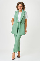Состав: 70%Лиоцелл (Вис) 30%ПЭ Параметры модели на первом фото: Рост 170, бюст 89, талия 63, бедра 92Брюки выполнены из плотного лиоцелла. Модель дополнена карманами и высоким поясом на пуговицах. Ткань изделия отлично держит форму, плавно драпируется и не просвечивает. В теплое время года приятно охлаждает кожу. Добавление синтетических волокон в составе изделия, предотвращает сминаемостьи поддерживает формоустойчивость. Брюки сочетаются в костюме с топом D23.063 и блузкой D29.266, D29.267 и жилетом D27.002