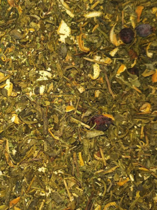 Зелёный индийский чай, шиповник, цедра лимона, мелисса.