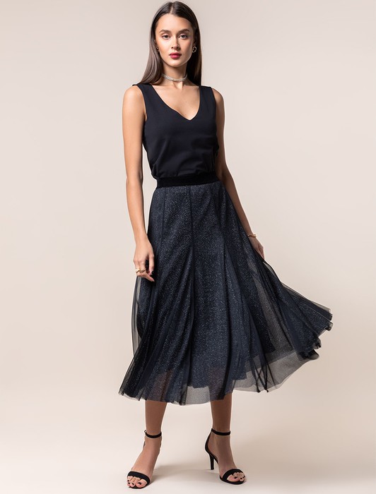 Состав: 85%ПА 15%Мет (люрекс); ПОДКЛАДКА- 100%ВисРоскошная юбка выполнена из сетки с люрексом и поясом из эластичной бархатной ленты. Пышный эффект создают три тонких слоя, первый прозрачный, второй сияющий с люрексом и третий подкладка из 100% вискозы. При каждом движении трехслойный этап создает впечатление россыпи алмазной крошки. Эта воздушная модель, поможет создать запоминающиеся праздничные образы, даже с базовым верхом.